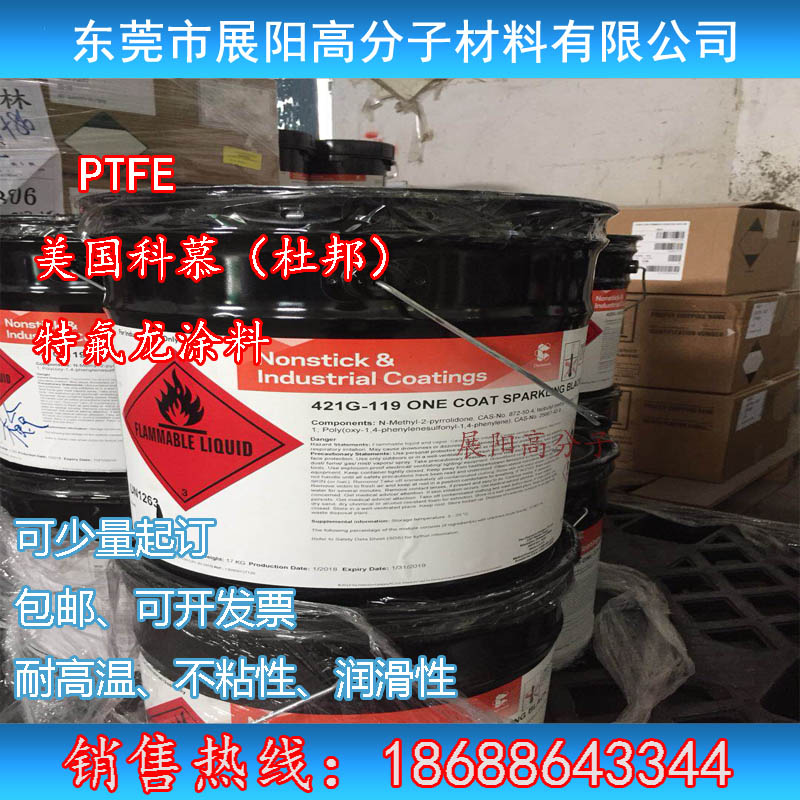 • 耐热性:Teflon™ 工业涂料可在高达 260°C (500°F) 的温度下连续使用,可在高达 316°C (600°F) 的温度下间歇使用,如果通风良好,不会影响其他性质。